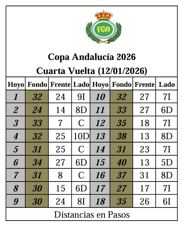 Horario de Salida 1ª Jornada de la Copa Andalucía Masculina 2026, prueba puntuable para el WAGR Masculino y para el Ranking Nacional Absoluto y Boy 2026 que se va a celebrar del 9 al 12 de enero en Montecastillo Barcelo Golf Club.