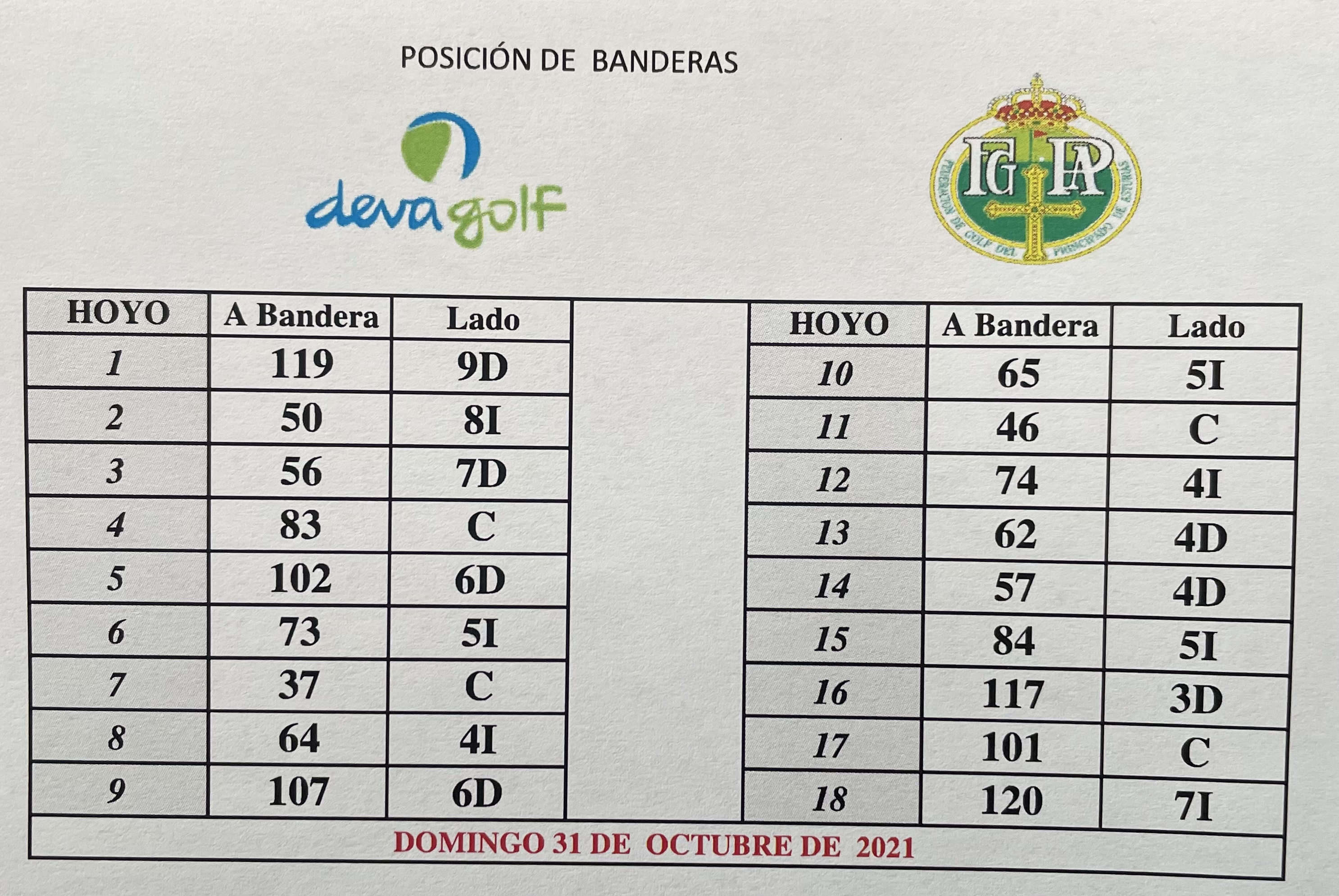 El CTP&P FGPA procede a la publicación del Listado de Admitidos y del Horario de Salida de la 1ª Jornada del Campeonato del Principado de Asturias Dobles de P&P 2021, que se va a celebrar del 30 al 31 de Octubre en Deva Golf, finaliza a a las 11:00 h. del jueves 28 de Octubre.