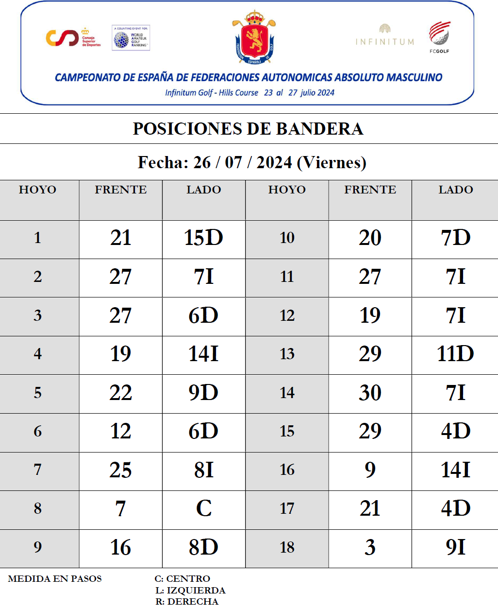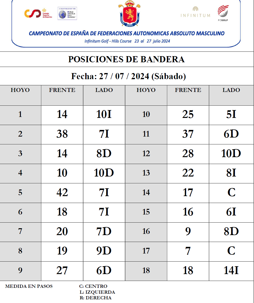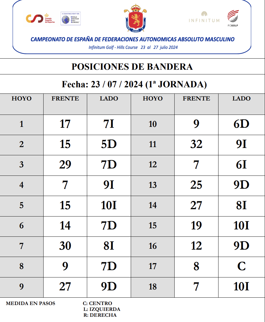 El CTAM RFEG procede a la publicación del Horario de Salida de la 1ª Jornada Stroke Play del Campeonato de España de FF AA Absoluto Masculino "XIX Memorial Santi Ollé", que se juega en el recorrido Hills de Infinitum.