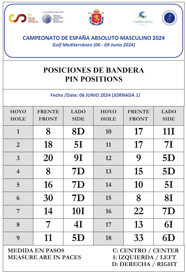 El CTAM RFEG procede a la publicación del horario de salida de las dos primeras jornadas del Campeonato de España Absoluto Amateur Masculino 2024, prueba valedera para el WAGR y para el Ranking Nacional Absoluto y Boy que se va a celebrar en Mediterráneo Golf del 6 al 9 de junio.