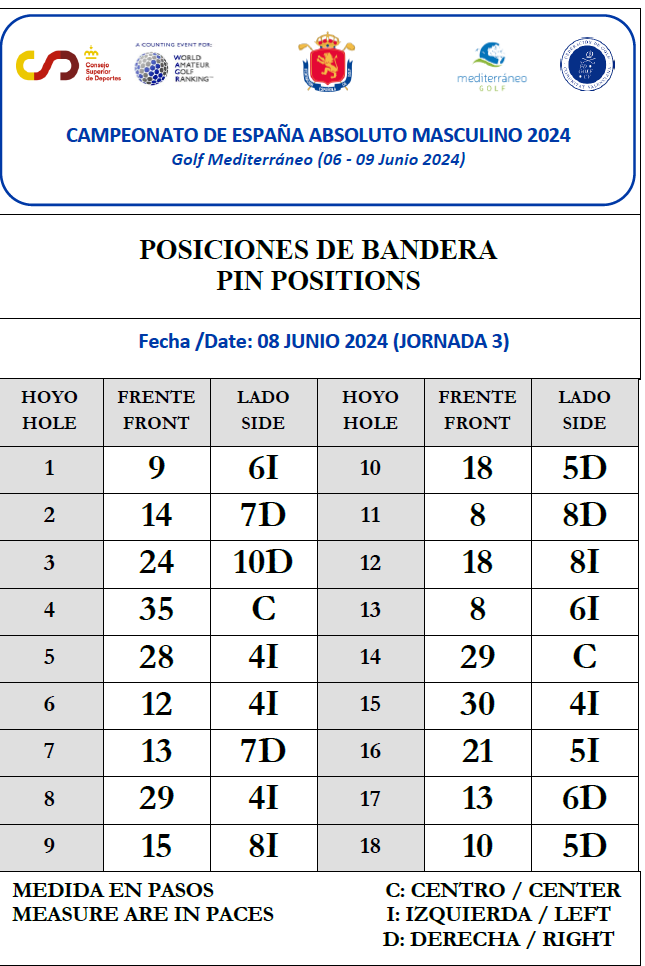 A falta de los definitivos 18 hoyos de la última jornada del Campeonato de España Absoluto Amateur Masculino 2024, Pablo Alperi López (RCG Castiello) co-lidera el torneo con un total de 208 golpes (68+70+70)