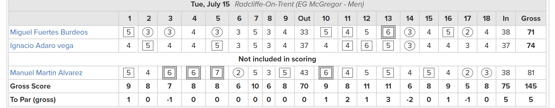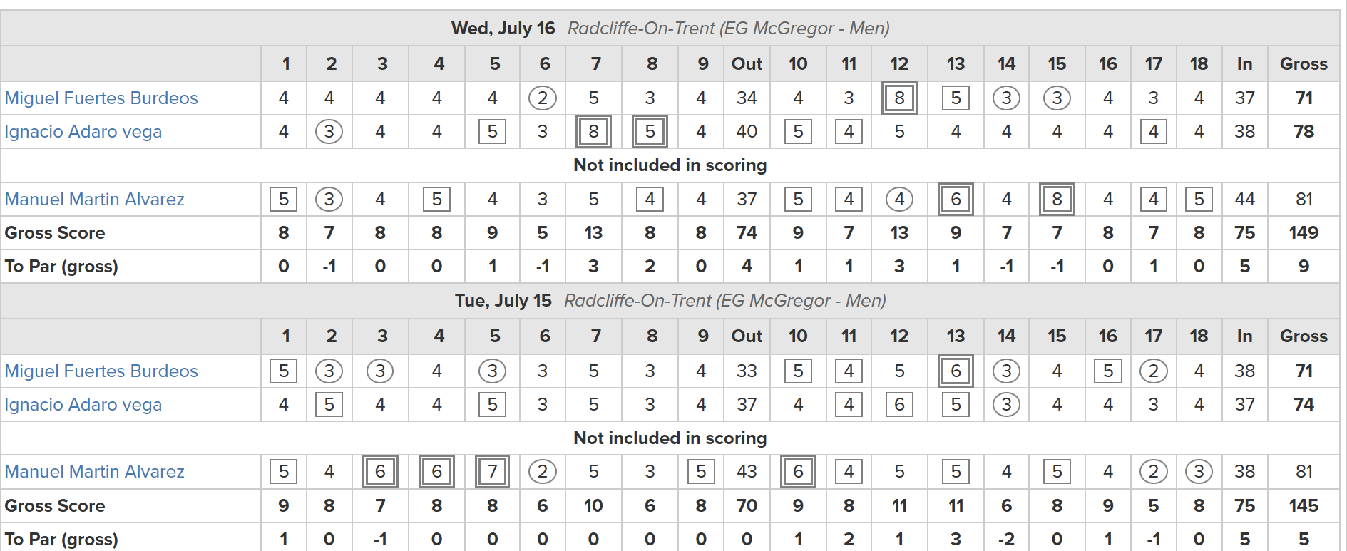 Con 152 golpes y vueltas de 74 y 78 golpes, doce sobre par en Radcliffe on Trent Golf Club, Ignacio Adaro Vega (RCG Castiello) falla el corte del The English Boys´Under 16 Open Amateur Stroke Play Championship (McGregor Trophy)