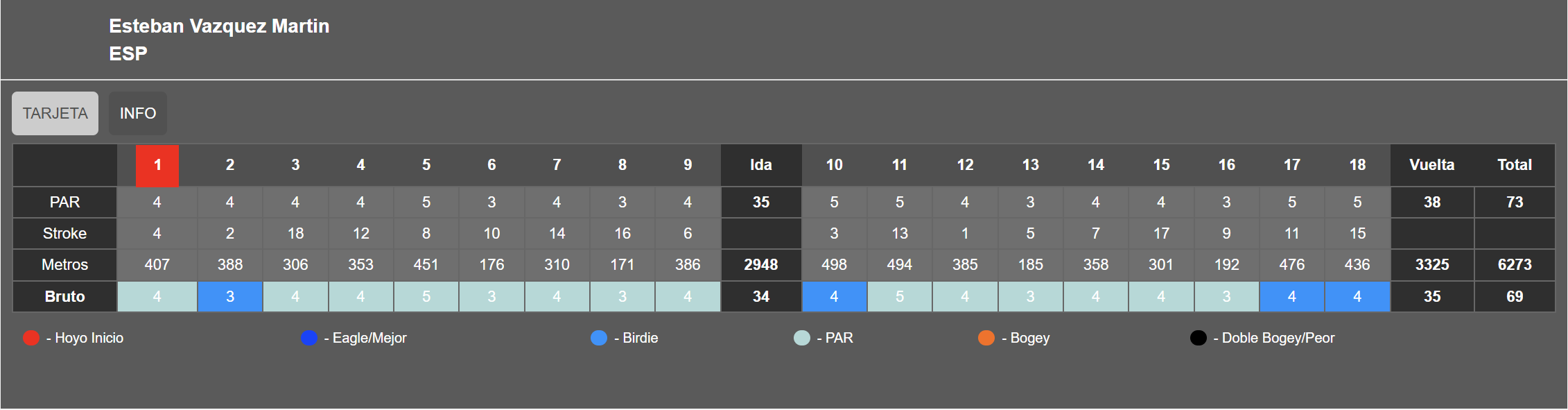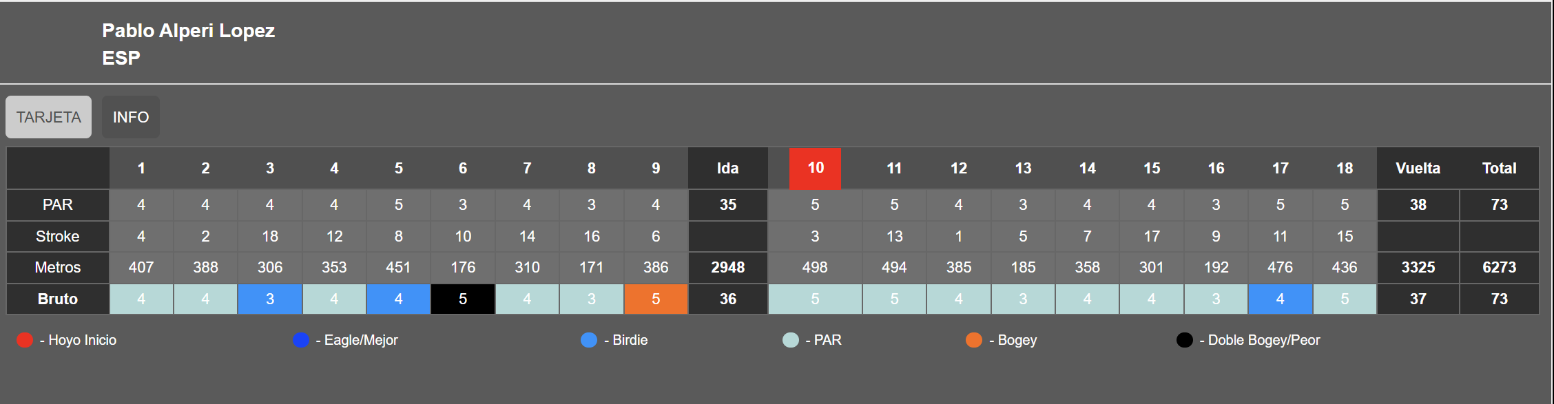 Puesto 42º para Pablo Alperi López (RCG Castiello) con el par del campo, 73 golpes, con tres birdies, un bogey y un doble bogey en su tarjeta.