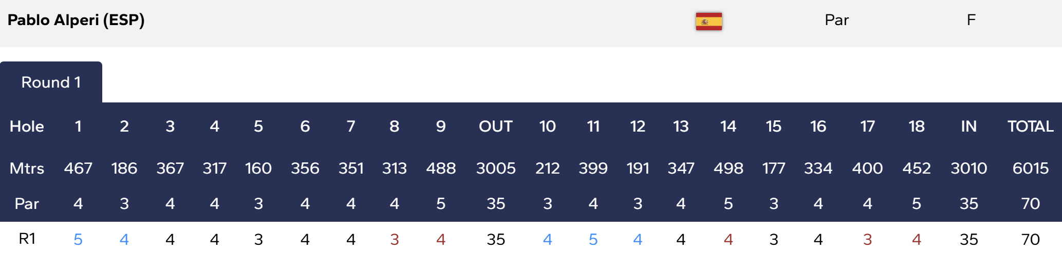Tarjeta de 70 golpes en Golf Il Cerreto di Miglianico, con cinco birdies por otros tantos bogeys, que le colocan en la posición 30 de la general.