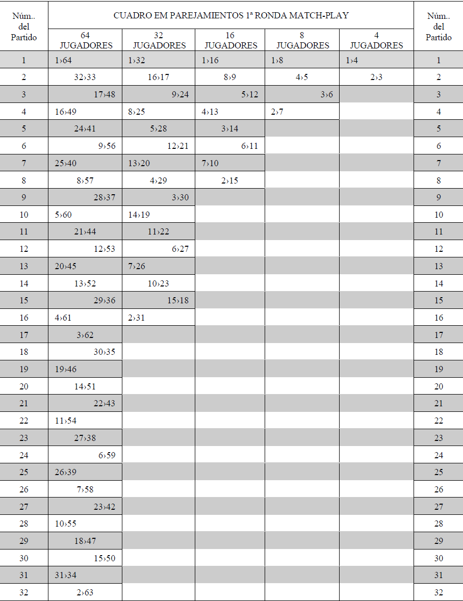 Las dos primeras jornadas se celebran bajo la modalidad Stroke Play a 18 hoyos, con el fin de establecer una clasificación y confeccionar un cuadro de Match Play con los 64 mejor clasificados.