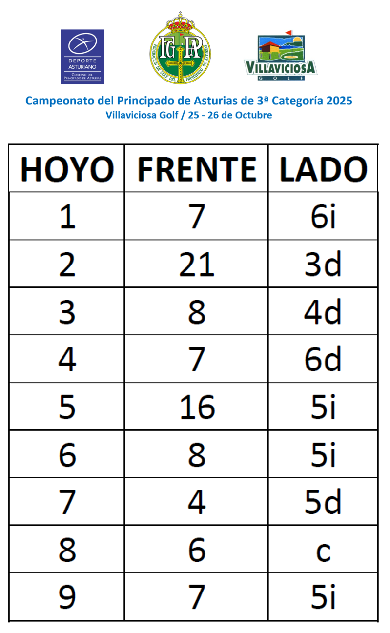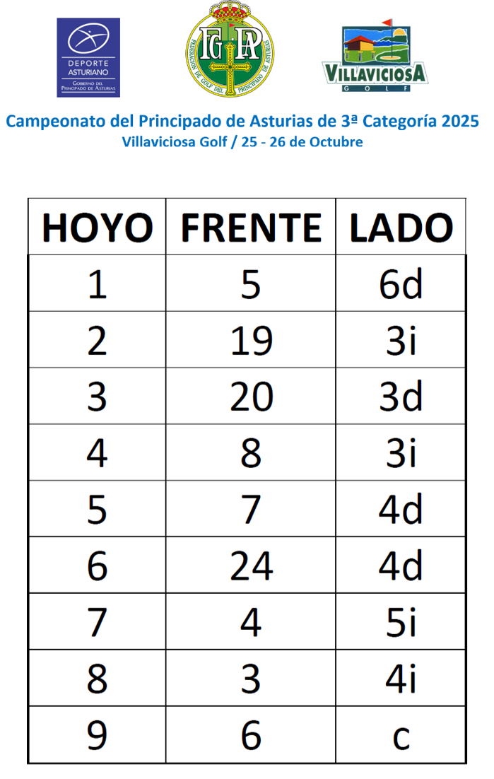 El CTAM FGPA procede a la publicación del Horario de Salida 1ª jornada y documentacion del Campeonato del Principado de Asturias de 3ª Categoría 2025, que se va a celebrar los próximos 25 y 26 de Octubre en Villaviciosa Golf.