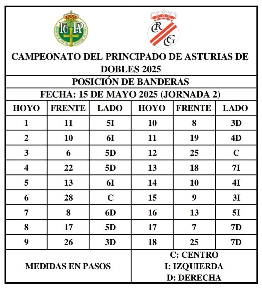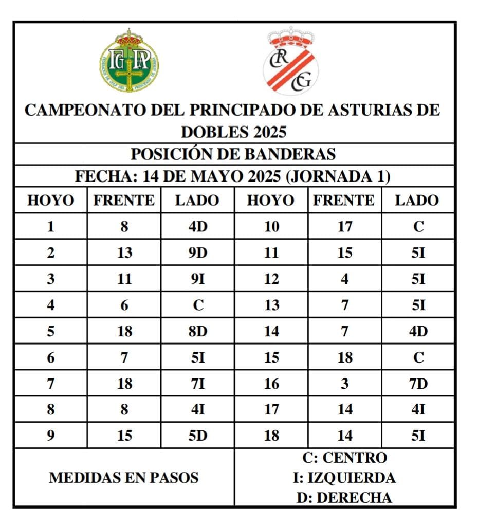 El CTAM FGPA procede a la publicación del Horario de Salida de la 1ª Jornada del Campeonato del PA Dobles 2025 que tiene lugar en el RCG Castiello, los días 14 y 15 de Junio.